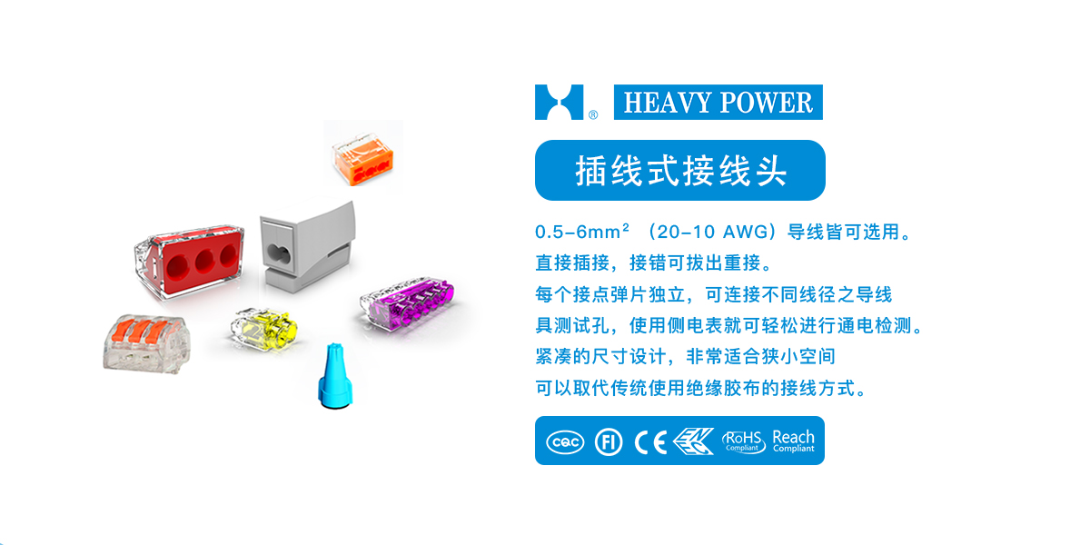 一、插線式接線頭產(chǎn)品特點(diǎn)1.0.5-6mm2(20-10 AWG)導(dǎo)線皆可選用。2.直接插接, 接錯(cuò)可拔出重接。3.每個(gè)接點(diǎn)彈片獨(dú)立,可連接不同線徑之導(dǎo)線。4.具測(cè)試孔,使用側(cè)電表就可輕松進(jìn)行通電檢測(cè)。5.緊湊的尺寸設(shè)計(jì),非常適合狹小空間。6.可以取代傳統(tǒng)使用絕緣膠布的接線方式。